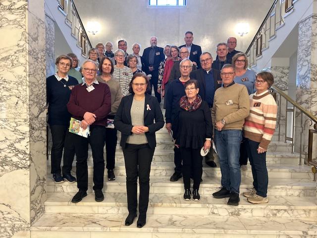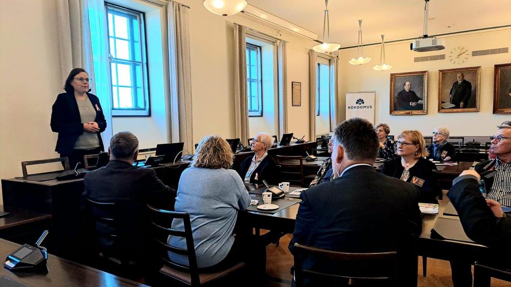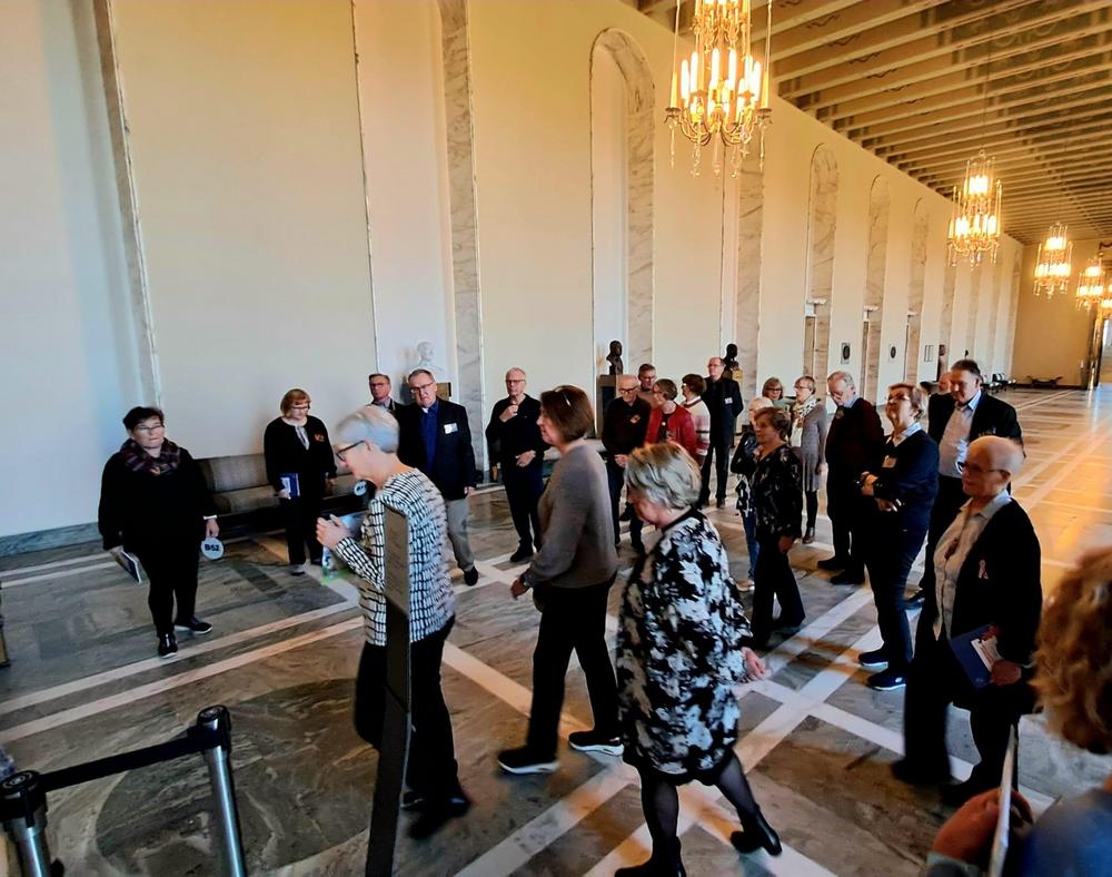 24 Klaukkalan senioria kävi 21.10. eduskuntavierailulla. Turvatarkastuksen jälkeen tutustuimme virallisen oppaan avustuksella taloon edeten kerroksittain ylöspäin. Keskustelimme talon historiasta ja rakennusratkaisuista. Istuntosaliin ja sen käytäntöihin tutustuimme lehteriltä. Lopuksi päädyimme keskustelemaan kansanedustaja, sosiaali- terveysvaliokunnan varapuheenjohtaja Mia Laihon kanssa sote- ja muusta ajankohtaispolitiikasta Kokoomuksen ryhmähuoneessa. Osa meistä jäi vielä seuraamaan täysistuntoa.