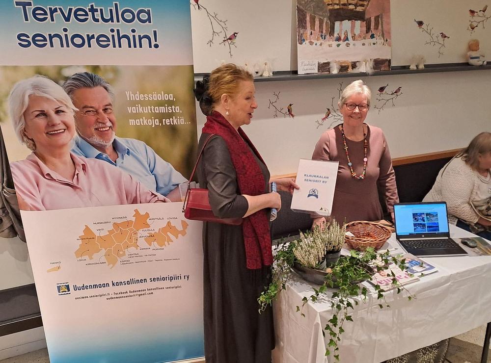 Klaukkalan seniorit ry oli vahvasti mukana ”omalla joukkueella” pj Merjan johdolla. Yhdistyksen jäsenmäärä on jo yli 100. Ainakin yksi jäsen tuli tilaisuudessa uutena mukaan.