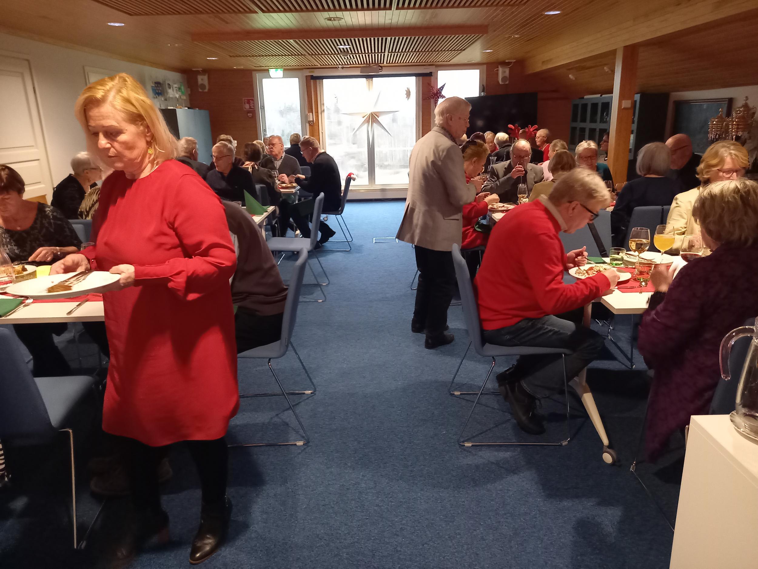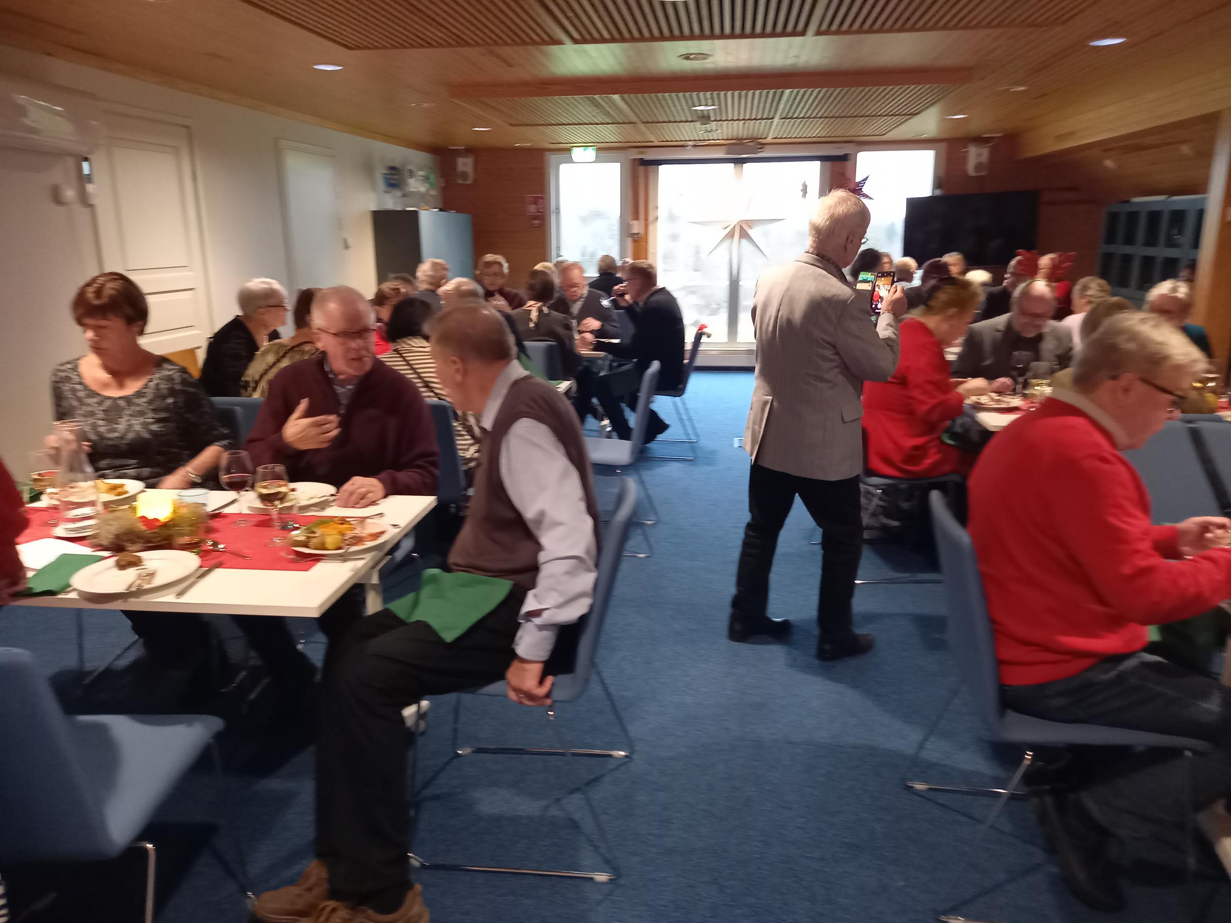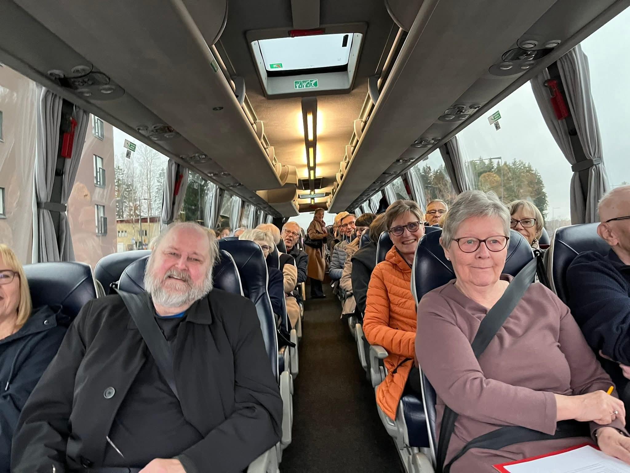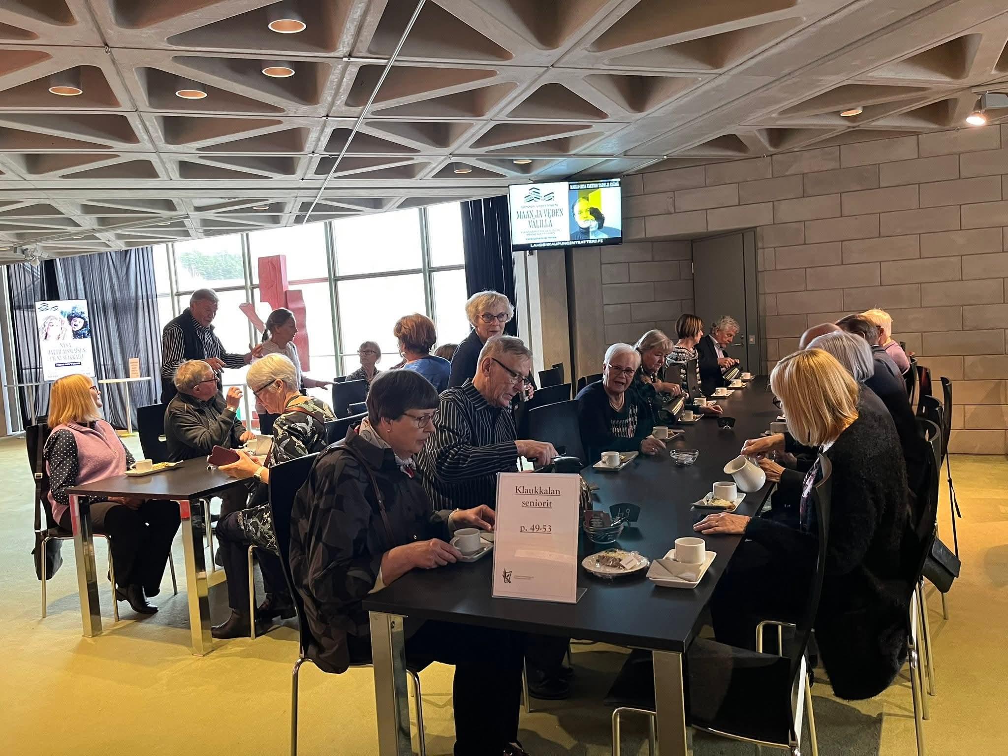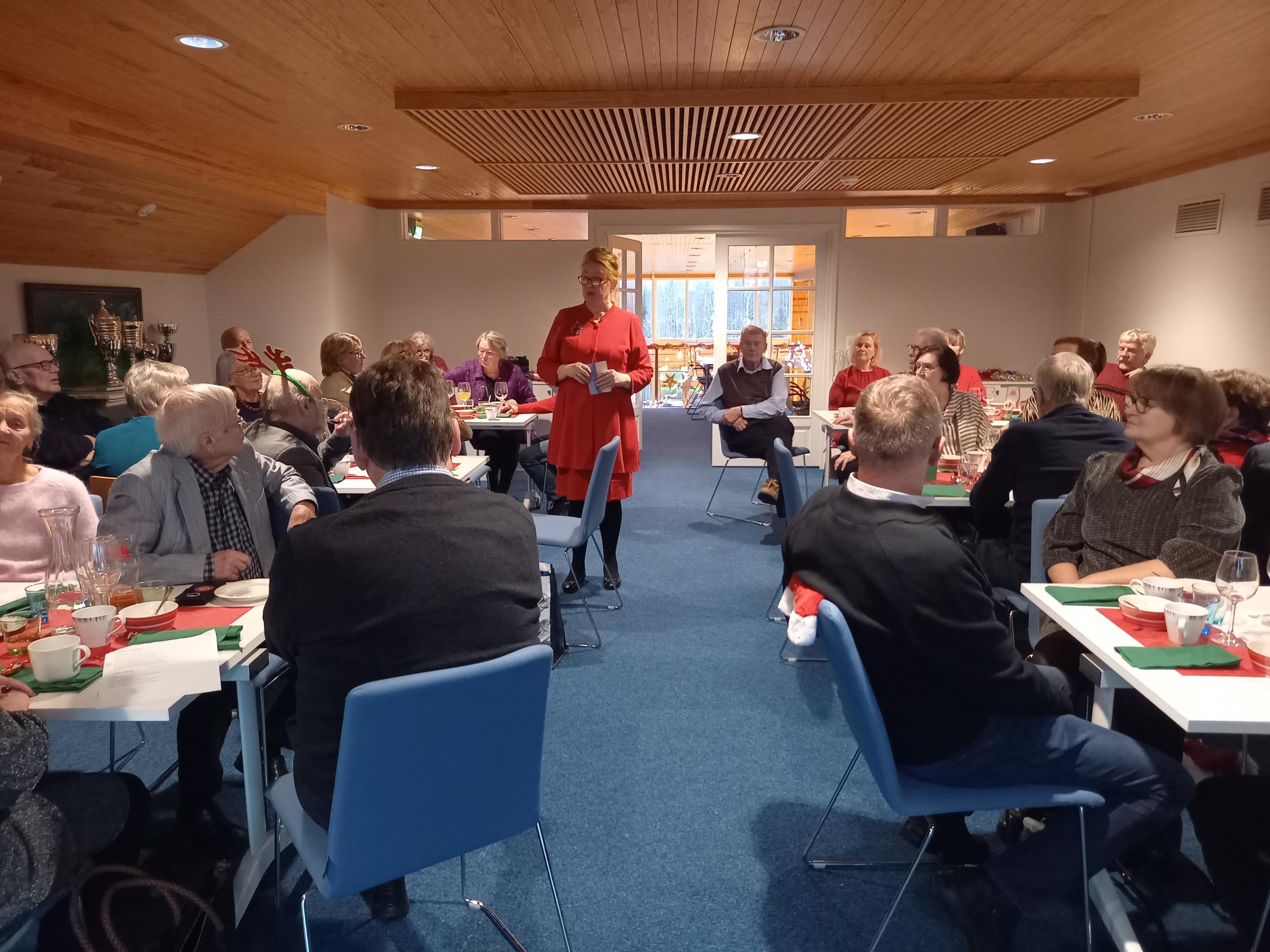 Klaukkalan seniorit kokoontuivat 11.12. jo kolmannen kerran pikkujoulua viettämään Nurmijärvi Golfin ravintolaan. Tunnelma kohosi hilpeäksi jo bussissa, jolla matkustettiin yhdessä tilaisuuteen.