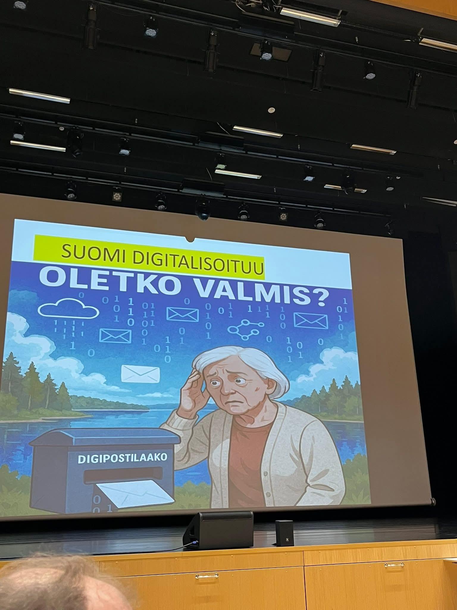 Esityksen jälkeen nautittiin kalakeittolounas jälkiruokakahveineen ja pullineen. Lounaan jälkeen seurasi toinen mielenkiintoinen esitys, Suomi.fi:stä, jonka tarjosi Kari Ylikylä.