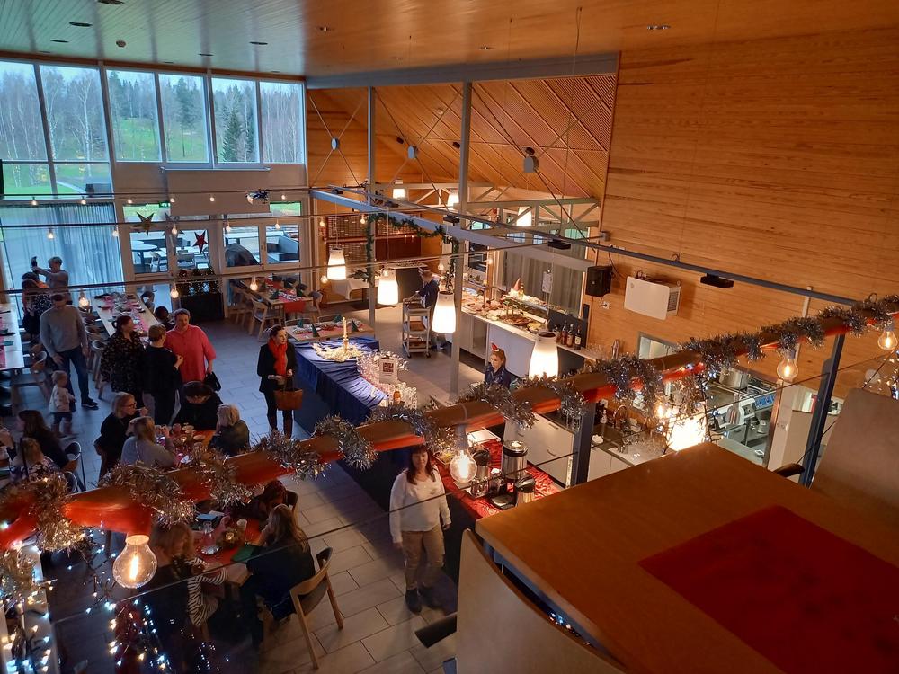 Ravintolan joulupöytä mm. mustikkagraavattuine lohineen ja poroterriineineen ei pettänyt odotuksia tälläkään kertaa. Myös jälkiruoaksi tarjotut piparitiramisu ja uuniomenapaistos vaniljakastikkeen kera sulivat suussa. Keskustelu oli vilkasta ja iloista.